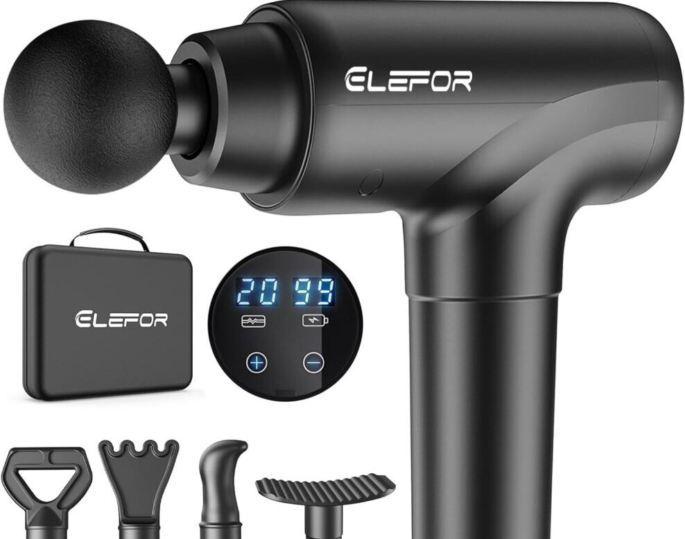 Tight muscles? Sore back? Long day at the desk? If so, the ELEFOR Massage Gun might be exactly what you need. This powerful recovery tool truly punches above its weight—literally. With 20 adjustable speeds and 8 interchangeable massage heads, it delivers targeted relief precisely where your body needs it most. Moreover, it’s quiet, powerful, and incredibly easy to use. Whether you’re warming up before a workout, cooling down afterward, or simply unwinding after a stressful day, this massage gun effortlessly melts away tension in just minutes. Ultimately, it makes recovery not just more effective but also more enjoyable.